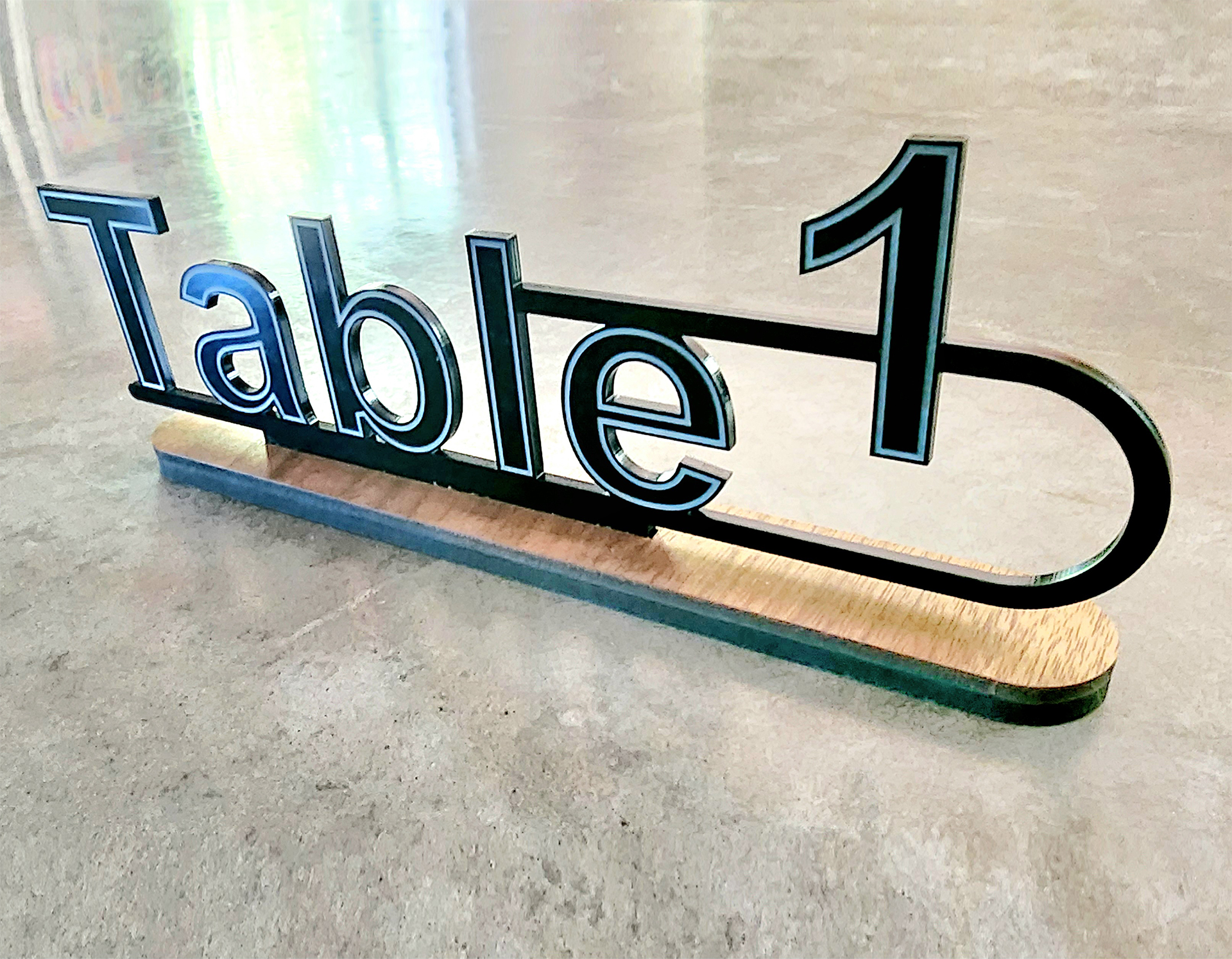 Elevate your event décor with our custom laser-cut table signage. From table numbers and name tags to themed signs and reserved seating markers. Perfect for weddings, corporate events, and gatherings, our custom signage enhances your tablescape with a unique, personalized touch that leaves a lasting impression.